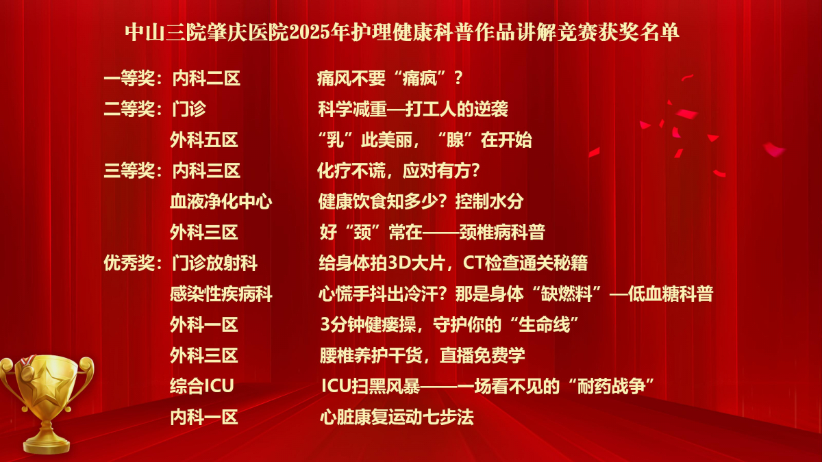 中山大學(xué)附屬第三醫(yī)院肇慶醫(yī)院第三屆護(hù)理健康科普講解競(jìng)賽圓滿落幕!