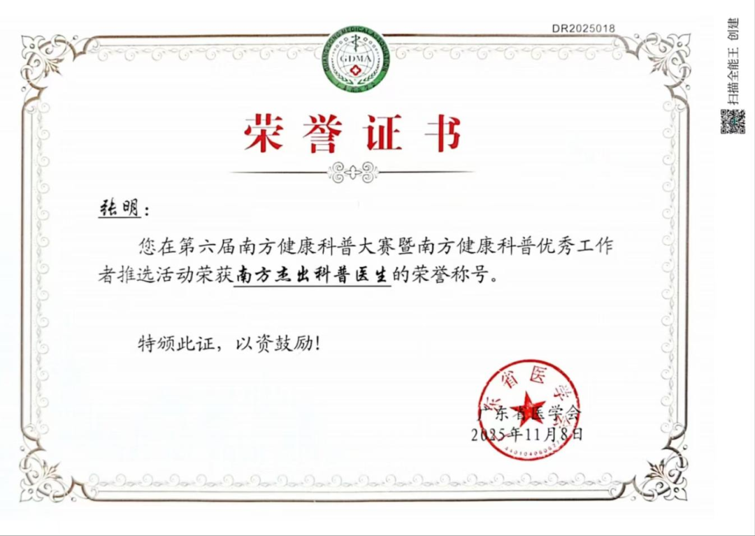 此次榮獲“南方杰出科普醫(yī)生”稱號,既是對張明醫(yī)生個人長期耕耘的肯定,也是我院作為國家區(qū)域醫(yī)療中心建設(shè)單位在人文關(guān)懷與公共服務(wù)領(lǐng)域成果的集中體現(xiàn)。展望未來,我院將繼續(xù)秉持科學精神,探索更多元的科普形式,為消除偏見、提升全民心理健康素養(yǎng)、構(gòu)建更加和諧健康的社會環(huán)境貢獻力量。